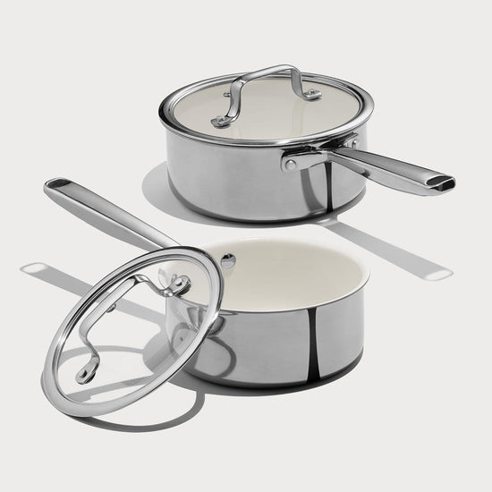 CAROTE 1.6Qt & 3.0Qt Ceramic Non Stick Sauce Pan with Lid,3-Ply Stainless Clad with Stay-Cool Handle,Non-toxic,Easy to Clean,Fits all stoves,Stay Cool Handle, Non-toxic and Oven Safe, PFOA PFAS Free