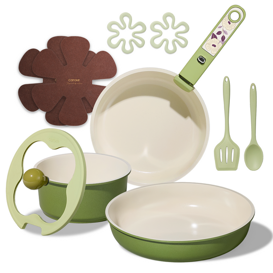 CAROTE 11pcs Ceramic Cookware Set, Pots and Pans Set Non stick, Induction Kitchen Cookware with Removable Handle, Oven Safe, RV/Camping Cookware, PFOA Free, Green