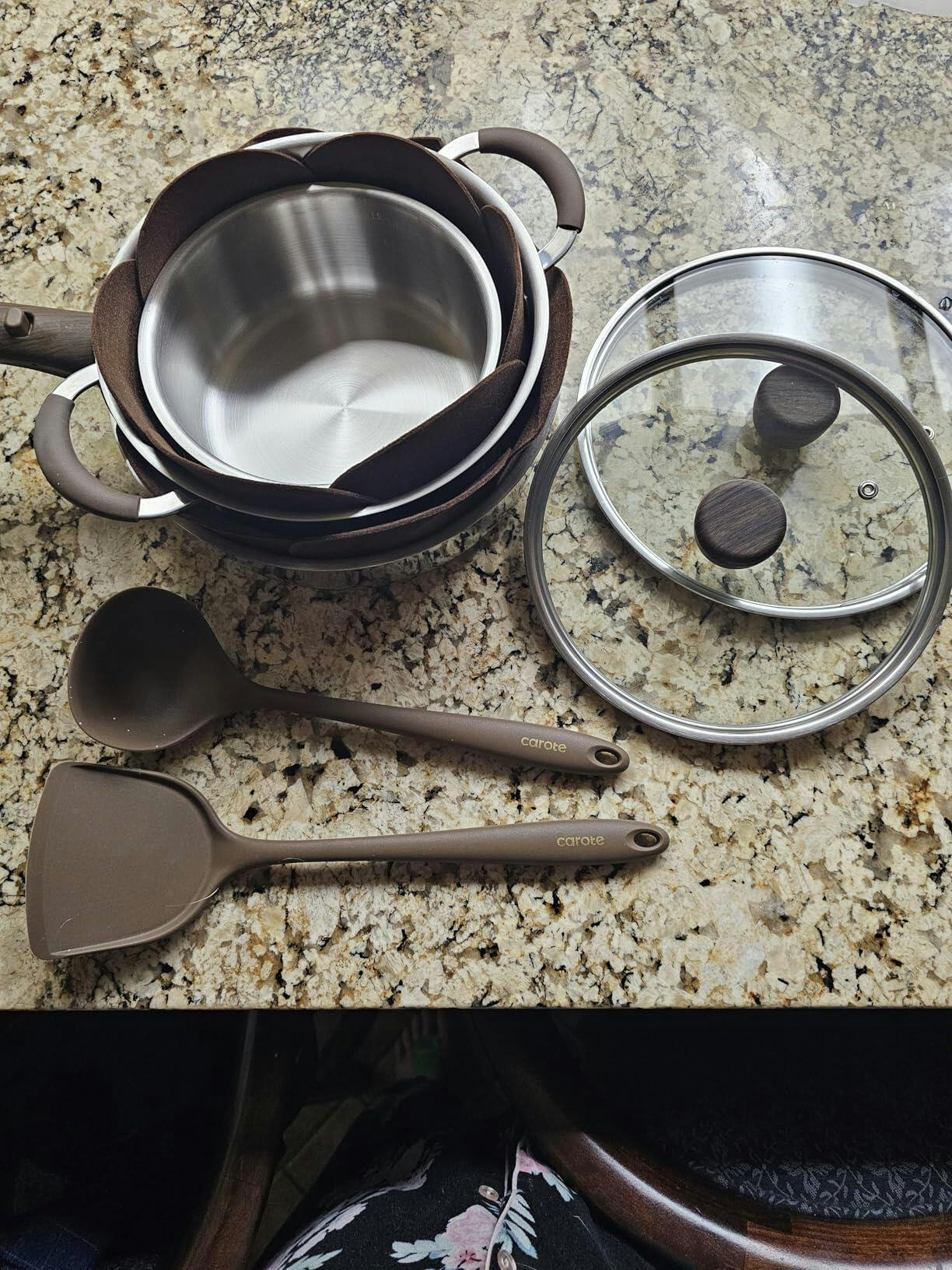 CAROTE 13pcs Tri-Ply Stainless Steel Cookware Set with Detachable Handle, Pots and Pans Set, Induction Kitchen Cooking Sets, RV/Camping Cookware SS TIKTOK