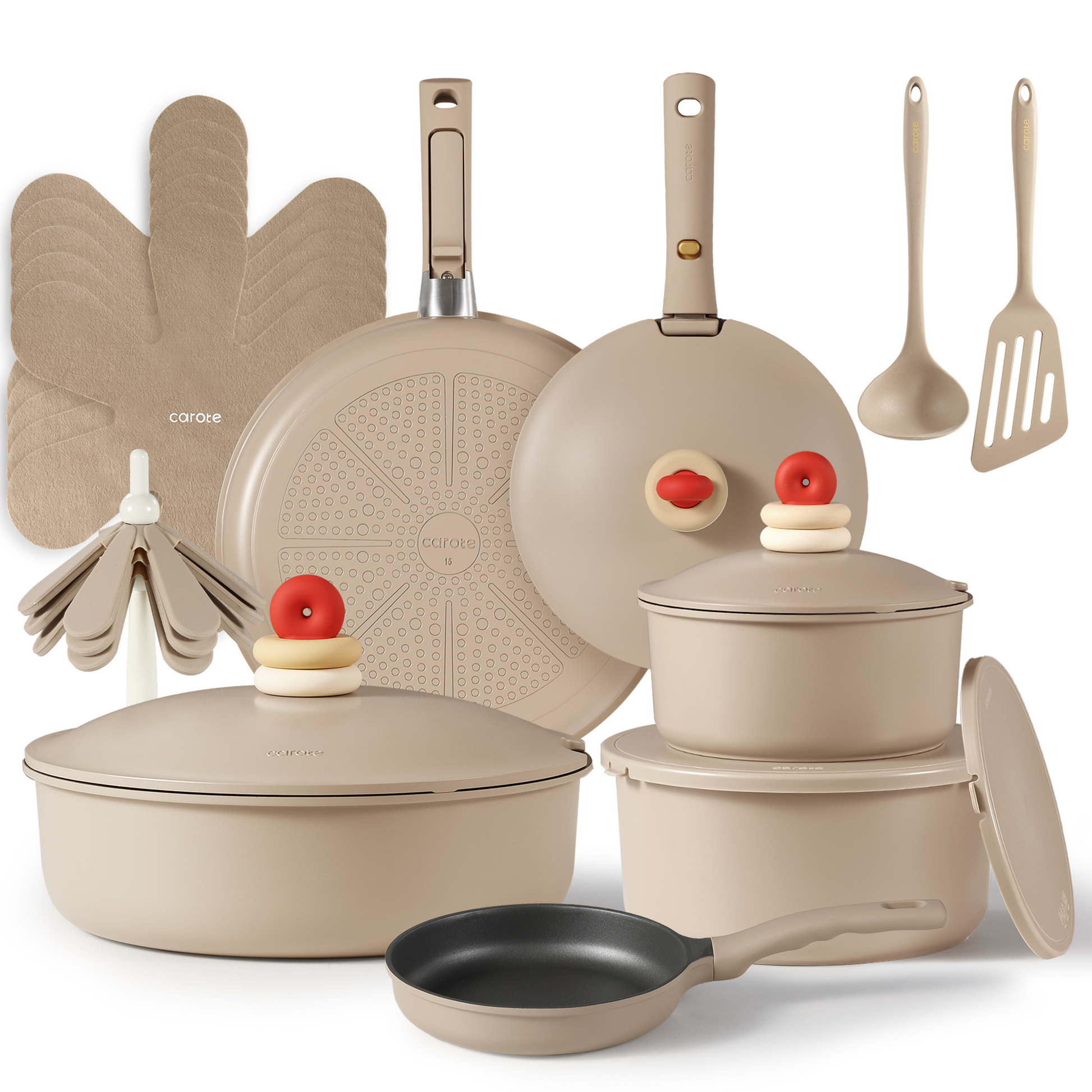 CAROTE 24pcs Nonstick Cookware Set Die Cast,Detachable Handle Pots and Pans Set