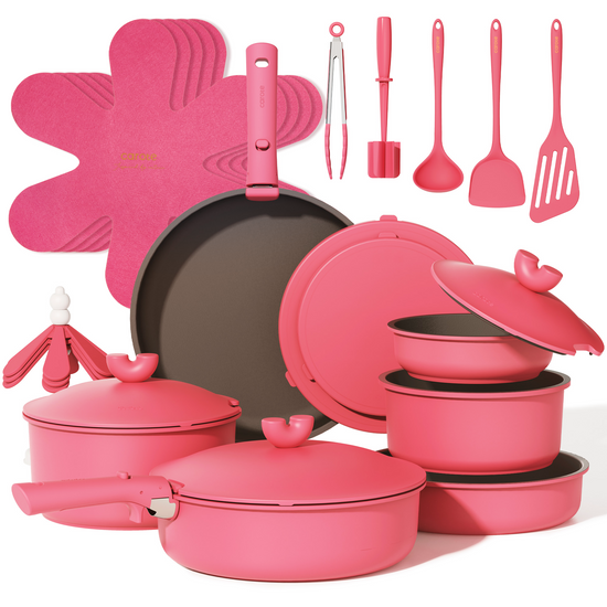 CAROTE 27pcs Pots and Pans Set Non Stick, Nonstick Cookware Set, Oven/Dishwasher/Fridge Safe Pots and Pans, RV Safe Cookware, Induction Kitchen Gift Set Detachable Handle, Pink