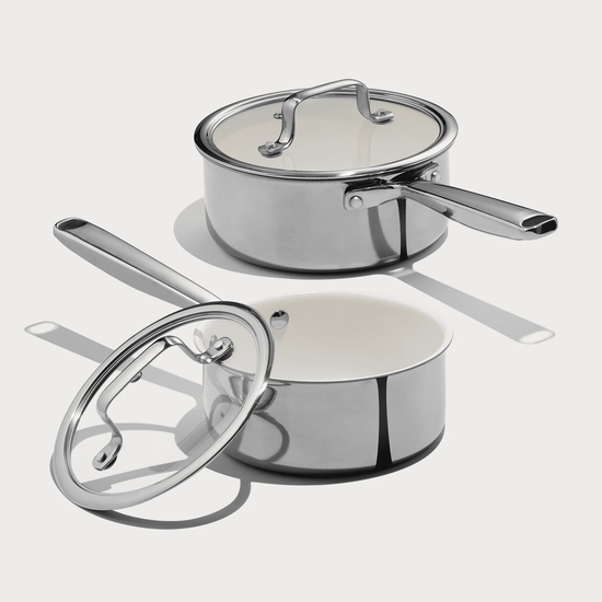 Carote 4-Pcs Tri-Ply Stainless Steel Saucepan Set with Lids, 1.5QT & 3QT Ceramic Coating Induction Pots, Rapid Heating, Easy Cleaning