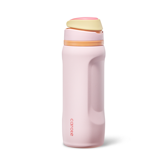 CAROTE Sip Free Insulated Stainless Steel Water Bottle with Straw, BPA-Free Sports Water Bottle, Great for Travel, Sunshine Coast Handle Tumbler, 32 Oz, Pink Peach