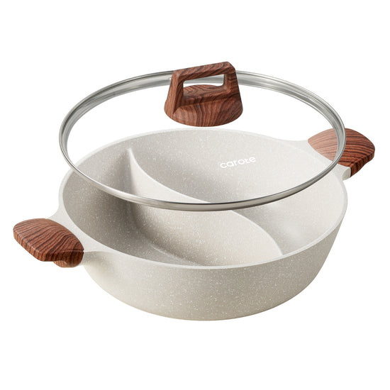 CAROTE 11.5 Inch Double-flavor Hot Pot with Divider, Shabu Shabu Pot Non Stick Divided Stockpot, Double-Sided Chinese Hot Pot for Induction Cooktop Gas Stove