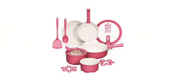 Carote 18 Pcs Nonstick Cookware Set, Pots and Pans Set with Detachable Handles, Oven/Dishwasher Safe, Stackable Kitchen Cooking Set, Rose Pink