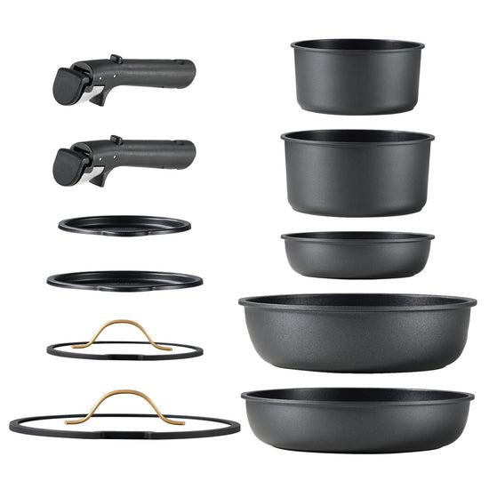 Carote Nonstick Cookware Set 13-Piece,Kitchen Pots and Pans Set,Stay-Cool Handles,Induction Compatible,Cookware Set for RV and Camping,Taupe