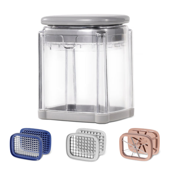 CAROTE 3 in1 Mandoline Slicer Vegetable Chopper, Onion Slicer with Container, Potato, Zucchini, Tomato, Fruit Dicer, Kitchen Gadgets, Grey/Blue/Pink